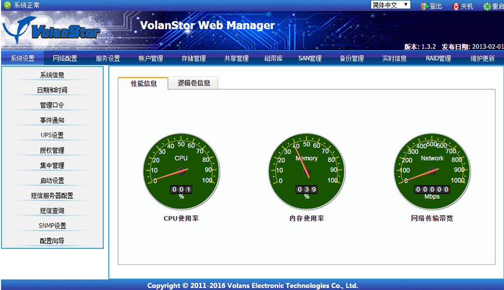 掉電保護 | 通過SP100檢測UPS掉電,在設定的時間內正常關閉存儲,并可以通知其他服務器 | |||||